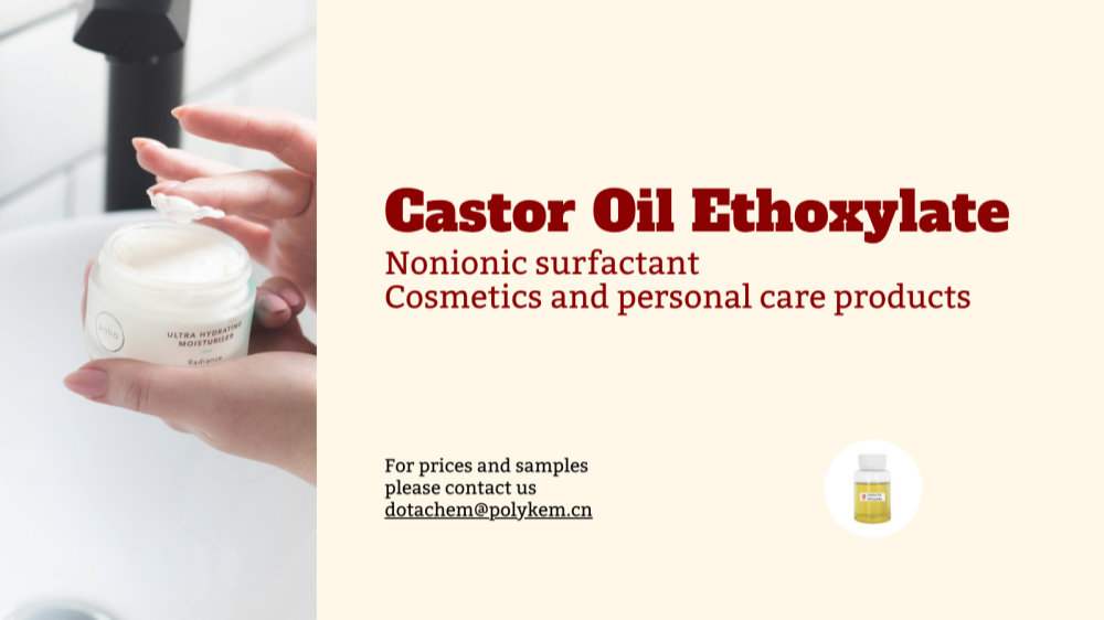 Αιθοξυλικό καστορέλαιοείναι ένα μη ιοντικό επιφανειοδραστικό που παράγεται από την αντίδραση του φυσικού καστορέλαιο με αιθυλενοξείδιο. Έχει εξαιρετική γαλακτωματοποιητική ικανότητα και λιπαντική και χρησιμοποιείται ευρέως σε βιομηχανικούς τομείς καθώς και σε προϊόντα προσωπικής φροντίδας και οικιακής καθαρισμού.
